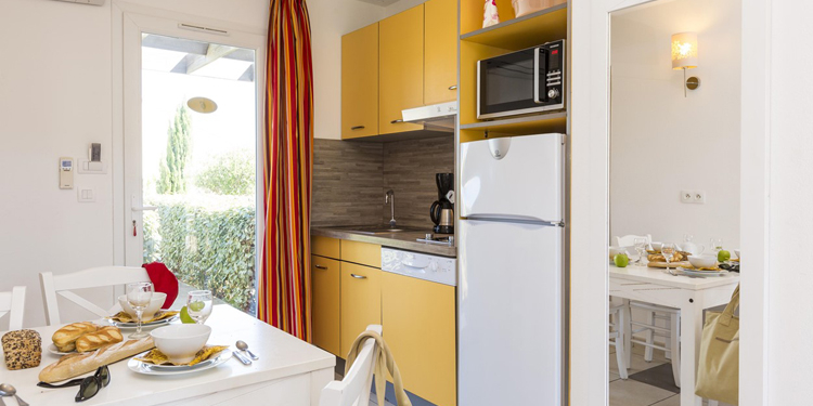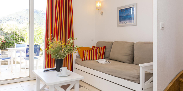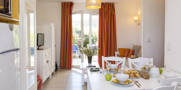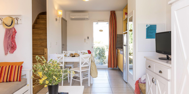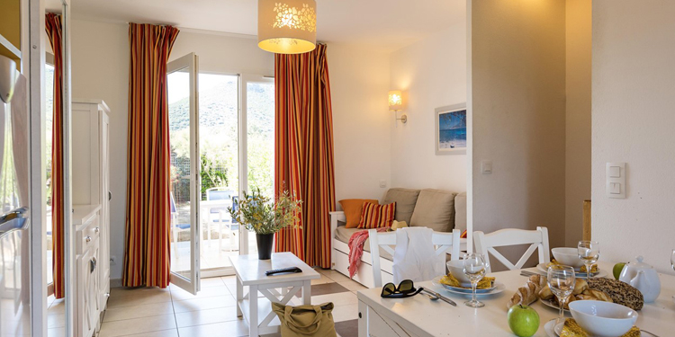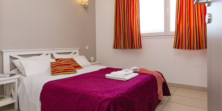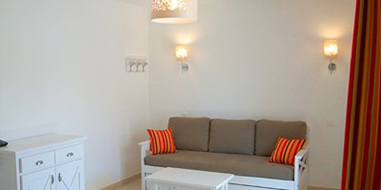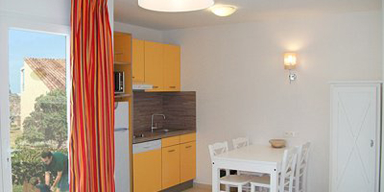 Bilocale 4 posti (circa 33mq): Per la maggior parte duplex. Soggiorno con divano letto, camera con letto matrimoniale. Angolo cottura attrezzato (piastra in vetroceramica, microonde/grill, lavastoviglie, frigo, caffettiera a filtro). Sala da bagno con WC separato. Terrazzo. Un parcheggio gratuito per appartamento (numerato).