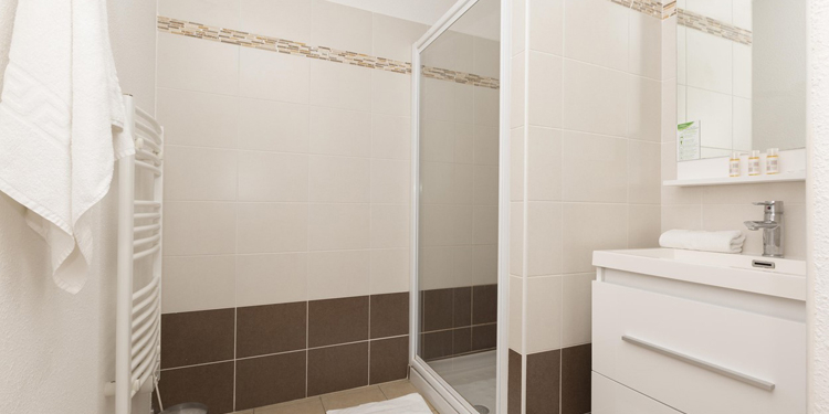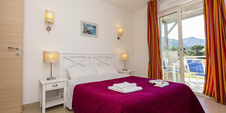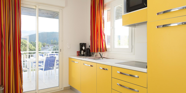 Bilocale 4 posti (circa 32mq): Soggiorno con divano letto. Camera con letto matrimoniale. Angolo cottura attrezzato (frigorifero, piastra in vetroceramica, microonde/grill, lavastoviglie). Sala da doccia con WC.